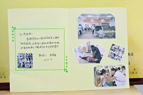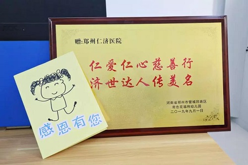 10月7日一上班,郑州仁济医院就收到了来自河南省郑州市管城回族区奇色花福利幼儿园赠送的书写着“仁爱仁心慈善行 济世达人传美名”的牌子和精心制作“感恩有您”的手工卡片,旨在感谢医院之前为其进行的爱心体检。