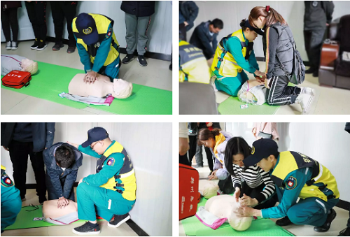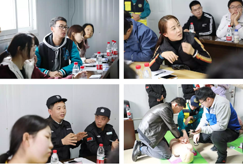 期间,郑州市急救中心完颜老师也惊喜的出现在培训现场,并指导学员们学习心肺复苏术(CPR)和自动体外除颤仪(AED)等。