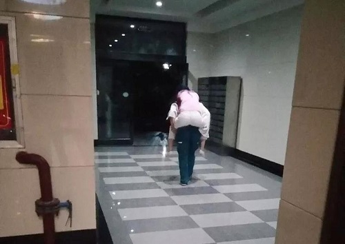 在急救现场,为了让伤者尽快到院救治,面对电梯无法放担架时,他自告奋勇弓着背将伤者从20余层的高楼背下;