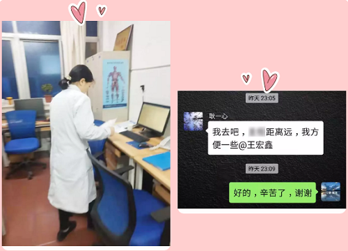 就这样,为了守护病友,耿一心副主任不辞辛苦的穿梭在两个院区,而且这个时间还在持续!她黑夜中去、黑夜中来,在我们看不到的地方默默的付出着、守护着,如果不是被细心的同事拍到记录下来,这一切的付出将鲜为人知。