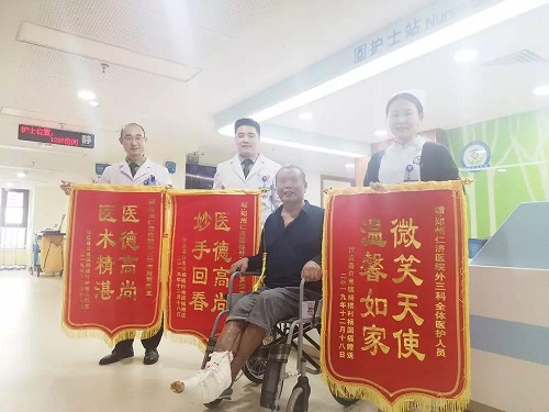 从山西太原到河南郑州,即使相隔数百公里,也要跨省邮寄锦旗来说“谢谢”俩字,以此感谢曾为其治疗的郑州仁济医院外八科的吴召森主任、吴军庆医生以及全科的医护人员等。