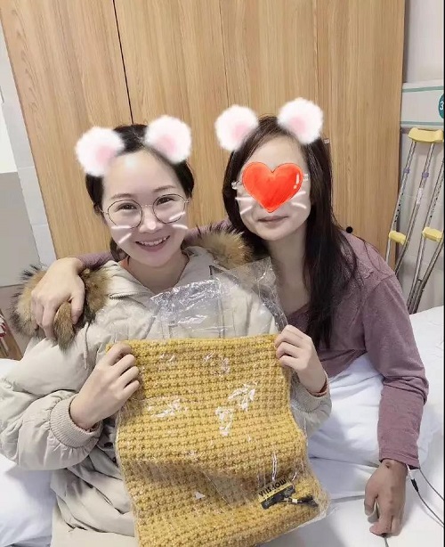 当来到病人床前时,病友将早已准备好的围巾,送给了杨丽丽。这一份突如其来的圣诞节礼物,让我们的护士激动和感动不已,她的反应是连连的惊讶,“没想到,没想到,真的没想到!”