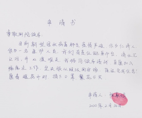 书写请战书里的成员,有高龄的老专家、有刚满20岁的姑娘、有经验丰富的护士长和科主任,虽然身份不同、专业不同,但是请战支援的决心是一样的坚定。