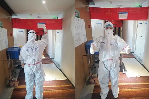 驻守隔离点儿的一线人员