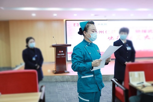 此次医疗队的带队负责人刘焱护士长,代表9名成员宣读了请战书,“我们必当竭尽全力与病毒抗战、必将拼尽全力救治生命,我们有信心有能力打胜这场战“疫”!驰援武汉,我们已经做好准备”!情真意切、感人至深的请战书,让与会人员热泪盈眶,更让我们深深的体会到了医务工作者的无畏、无私与伟大。