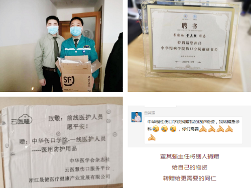 董主任说,“这虽然是中华慢性创口学院捐赠给我的防护物资,24小时值守预检分诊处的急诊科更需要,转赠给你们”!