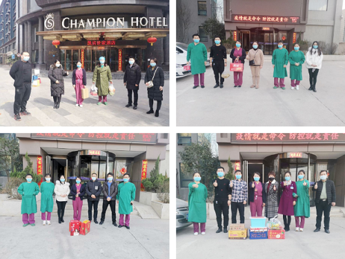 从2月22日到今天,郑州仁济医院驻守的两个管城区隔离点儿的医护人员,分别收到了外三科、外九科、外八科和显微整形美容中心、门诊部、外四科以及外十科等仁济家人送来的礼物。