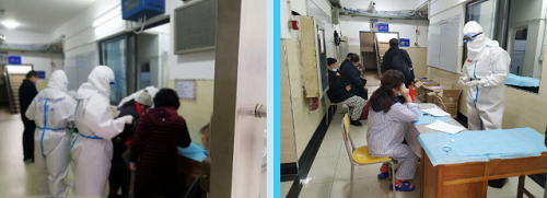 13:00 班次的同事开始接收病人,来来回回繁忙转运的急救车把一车一车的病人陆续送来。转到此的病人越来越多,看着急救车来往不断,办理登记的病人排起了长队,我意识到,我的队友们需要增援!穿好防护服,一句话也没有说,我们夜班的所有人,加入了战队,开始工作。