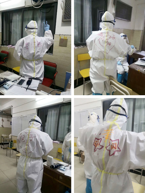 在前6天里,我们看到 多的是防护服里露出的两只眼睛,如果不是背上的名字和可爱的小画,即使是 熟悉的仁济家人,也难以分辨他们是谁!