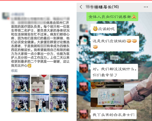 “还有我们热心肠的安保师傅,也纷纷加入进来,主动帮忙搬中药,在微信群里与病人互动、安慰鼓励大家,更贴心的为大家拍照等”,每一个人都在尽己所能的为抗击疫情进行着努力”!