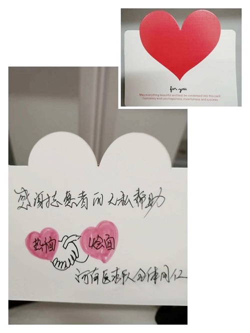 工作的闲暇之余,贺格,罗卫云还有黄闪闪,她们会做一些精美的赞美卡,送到志愿者手中,感谢他们大病初愈就在协助我们工作。这是一群在家里时还需要妈妈照顾的孩子,就这样离开父母去照顾那些更需要照顾的人。就如网上流传的那句话,他们只不过是一群孩子,模仿父辈的模样,换上战袍冲锋陷阵,于是就成了英雄。