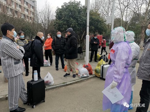 2月26日下午,我离开后湖分院去进行14天隔离医学观察。16:30到达观察区,由于来观察区的人很多,在大门外等了1个多小时。