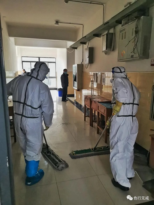 拖走了垃圾又开始做清洁,拖地和消毒。