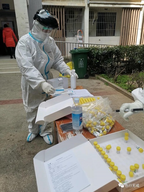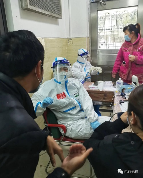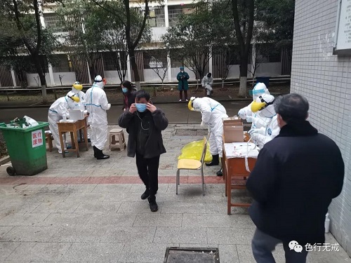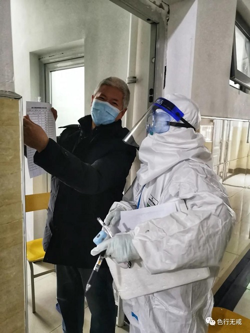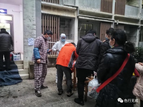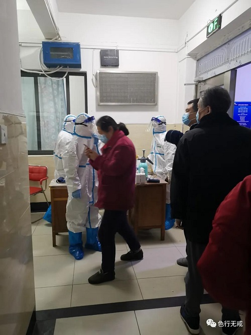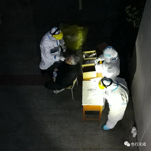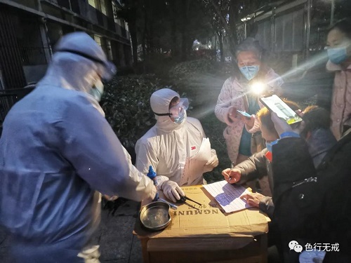 3月3日是我们 次进行核酸检测,大家非常紧张,如果检测为阳性,立马送回医院治疗。下午3点开始,分每层楼通知下楼检测,大家排着队,保持一定的距离,按照工作人员的要求,一直检测到晚上8点多钟。