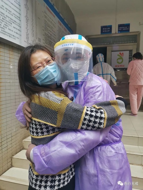 我明白了,家里肯定也是有人离开了,这几天见过一两个。我赶紧握着她的手,用力拍着,说别难过,别难过。她一下就崩溃了,原来她老公头天晚上死于新冠肺炎。女儿为了照顾她们也被感染了。我轻轻地拍着她抖动的双肩膀,此时语言是多余的。我扶着她踏上楼梯,然后嘱托她要坚强,会把她的情况向指挥部报告。