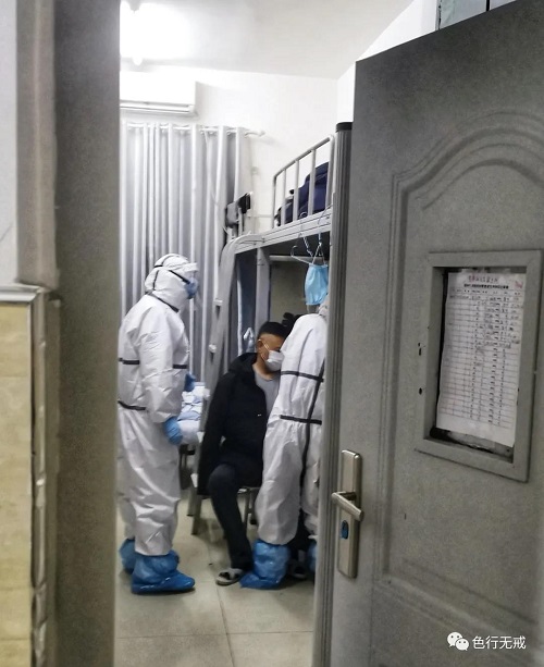 下午6点多才到了住宿地方,先要进行体温测试,对身份核对,领取日用品。医护人员按5人一组带上楼,登记安置。