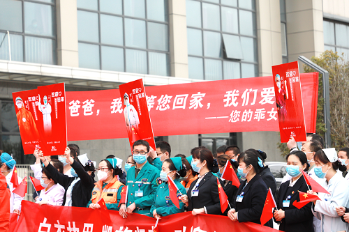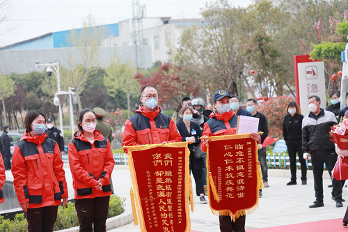据了解,在医疗队返家之际,武汉江岸区防控指挥部也在3月28日举行了欢送仪式,精心制作了写着“白衣执甲方知英雄本色,扛鼎逆行彰显医者仁心”等文字的3面锦旗,并写下了一封感人至深的感谢信,以此感谢医疗队在危难时刻挺身而出进行支援的“硬核”行动和珍贵精神。