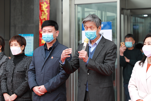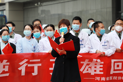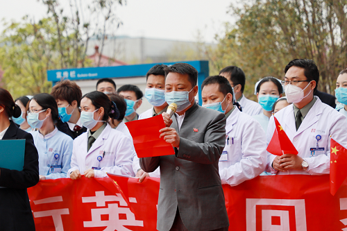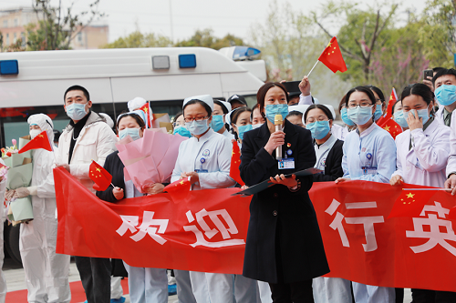 区委组织部部长刘宁代表管城区委区政府欢迎英雄们平安凯旋归来,并表示,“在2月25日,当时你们临危受命、逆向而行,驰援到防控工作的 前沿。你们践行了你们的诺言,医者仁心的使命、济助世人的情怀、赴汤蹈火的担当,出色的完成了任务,并收到了武汉人民、当地政府的高度肯定,你们为河南人书写了一个大大的中字;你们也践行了对我们的诺言,一个不少的平安归来,今天你们平安回来了,我们就放心了。你们的付出、仁济医院的付出,组织不会忘记,人民更会牢记。”
