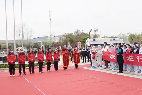 到达南院区后, 时间迎接他们的是热烈的掌声和一声高过一声的“仁济英雄,欢迎回家”的呼喊!医疗队成员在刘焱队长的带领下,重整队伍,并向管城区的领导及全院人员汇报,“本次医疗队驰援武汉成员已全部安全返回,不辱使命”!