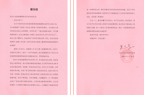 除了同事、“仁济家人”的照顾外,还收到了来自远东宏信副总裁、医院集团总经理吴志军的《慰问信》。