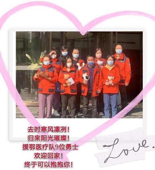 自2月25日9:30,9人援鄂医疗队从南院区出发之后,在武汉奋战30余天,圆满完成了江岸区防控指挥部指派的任务,独立承担一栋6层宿舍楼、200余名确诊病人后续观察治疗的重任。