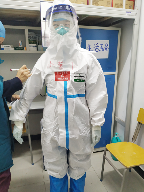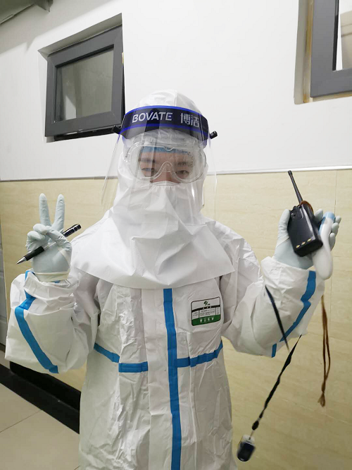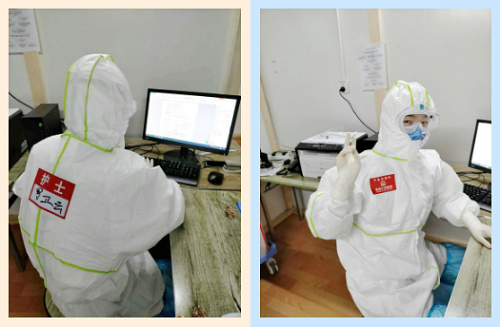 尽管年龄小、又是一名女子,但是她的付出不亚于医疗队里的任何一位年长者。在到达武汉的当晚,未有片刻休息,便于医疗队一起立即投入到工作中,巡查驻守的“确诊病人后续观察治疗点儿”的环境和布局,将问题汇总反馈给刘焱队长,帮忙搬运物资等,一直忙到深夜11点多。