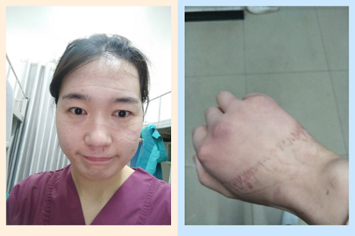 同伴要搀扶她去休息,她坚持说,“病人需要你们,我自己可以的”。还边走边回头,向队友们道歉,“对不起大家了……”。稍作调整、待身体有所缓解后,就又加入到了“战斗”中。