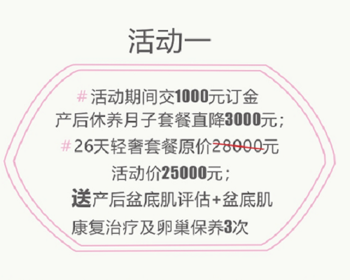 参加活动一或者活动二,送 一对一月嫂,精美月子餐~~~~
