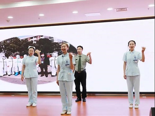 接下来,我们优秀的护理团队将韵律操、手语舞、八段锦、快板、热舞和歌曲串烧在一起。尤其是 后一个节目药械科叶红艳带来的歌曲《生而平凡》,轻柔的歌声触动人心,伴随着歌曲,仁济人抗击疫情那一幕幕重现在大屏幕上,会场所有人再次被深深感动。