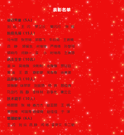 随后,徐新莉副院长宣读表彰决定,徐院长首先代表院领导班子向受到表彰的获奖个人和集体表示祝贺,向奋战在工作一线的全院护理工作者们致以节日的问候。此次表彰的有逆行天使5人、防疫先锋15人、病友至亲10人、品质标兵10人、技术能手10人、管理能手6人。与会领导为受表彰人员颁发了获奖证书。